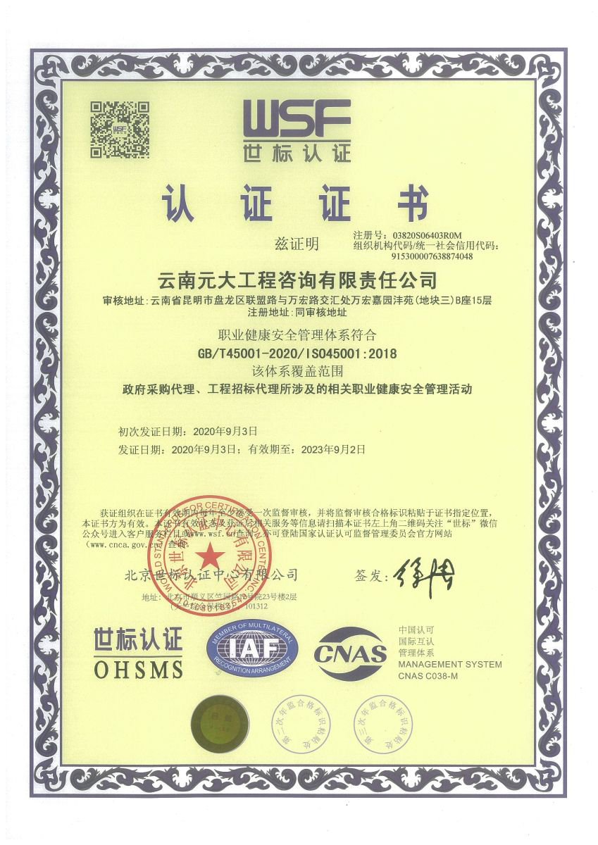 公司是云南省招標投標行業協會會長單位,現為云南省住建廳信用評級招標代理機構AAA級單位。公司先后榮獲住建部頒發的“工程招標代理機構甲級資質證書”、財政部頒發的“政府采購代理機構甲級資格證書”,并在財政部及中國政府采購網“政府采購代理機構名單”登記備案、獲得國家發展改革委頒發的“中央投資項目招標代理機構甲級資格證書”、商務部頒發的“國際招標機構預乙級資格證書”、機電產品國際招標電子交易平臺頒發的“機電產品國際招標電子交易證書”、國家國防科技工業局頒發的“軍工涉密業務咨詢服務安全保密條件備案證書”。公司已通過ISO9001:2015質量管理體系認證、ISO14001:2015環境管理體系認證、ISO45001:2018職業健康安全管理體系認證。納稅信用評價已連續三年被評為A級......